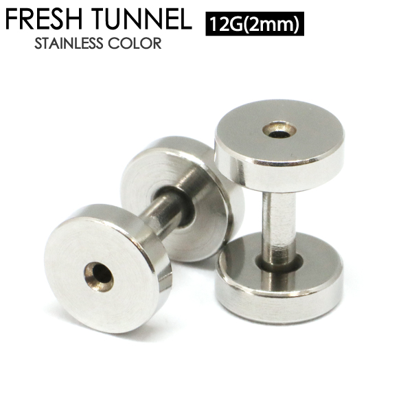 【メール便対応】ボディピアス フレッシュトンネル 12G(2mm) アイレット サージカルステンレス316L 定番 ボディーピアス ネジ式 シンプル イヤーロブ ホールトゥに最適 12ゲージ┃