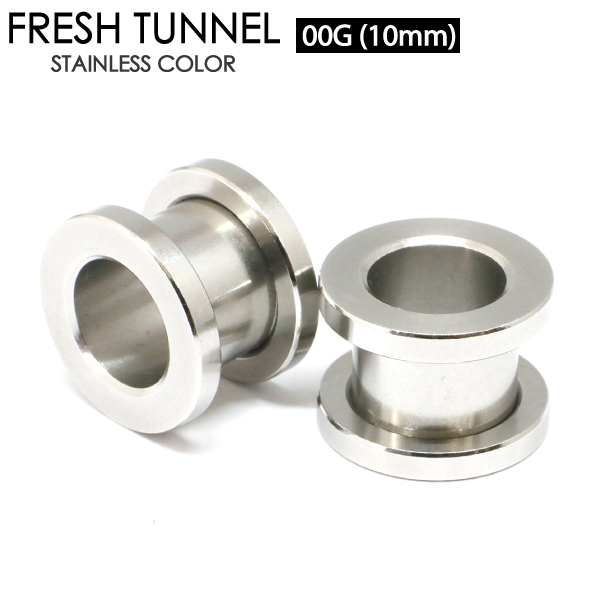 【メール便対応】ボディピアス フレッシュトンネル 00G(10mm) アイレット サージカルステンレス316L 定番 ボディーピアス ネジ式 シンプル イヤーロブ ホールトゥに最適 00ゲージ┃