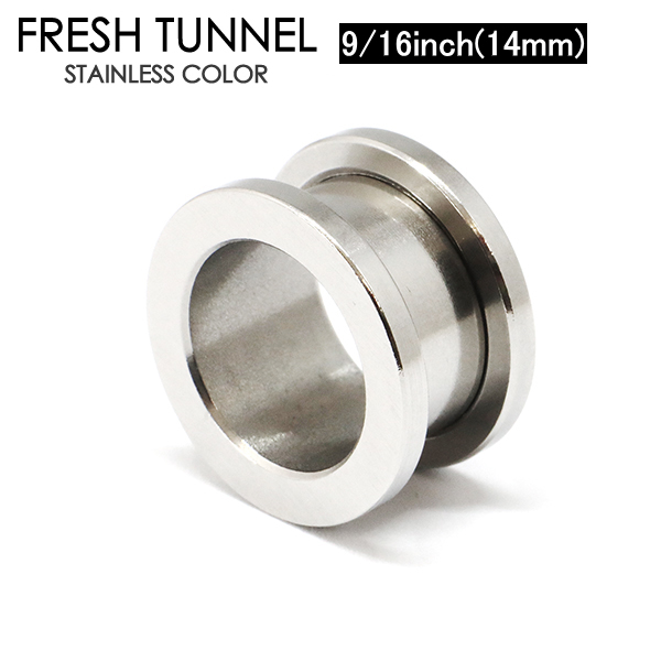 【メール便対応】ボディピアス フレッシュトンネル 9/16inch(14mm) アイレット サージカルステンレス316L 定番 ボディーピアス ネジ式 シンプル イヤーロブ ホールトゥに最適 9/16インチ(14ミリ)┃
