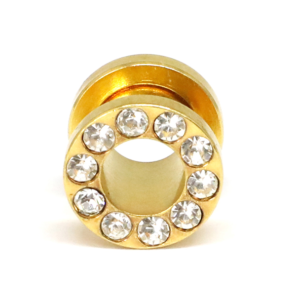 メール便 送料無料 フレッシュトンネル ゴールド ラインストーン仕様 0GA(8mm) サージカルステンレス316L 【ジュエル付 ロブ アイレット イヤーレット】 0ゲージ┃