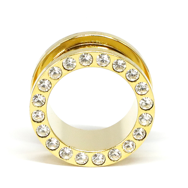 メール便 送料無料 フレッシュトンネル ゴールド ラインストーン仕様 23/32inch(18mm) サージカルステンレス316L ボディピアス【ジュエル付 ロブ アイレット イヤーレット】18ミリ ┃