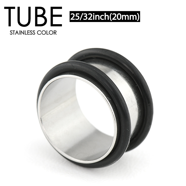 【メール便対応】ボディピアス チューブ 25/32inch(20mm) アイレット サージカルステンレス316L 両側をゴムで固定 定番ボディーピアス イヤーロブ ホールトゥピアス 25/32インチ(20ミリ)┃