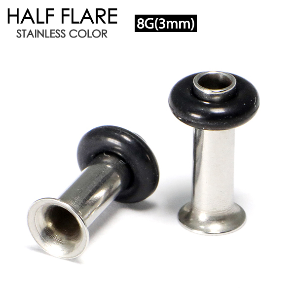 【メール便対応】シングルフレア ハーフフレア 8G(3mm) ボディピアス サージカルステンレス316L アイレット 定番ボディーピアス ホールトゥピアス 8ゲージ(3ミリ)┃