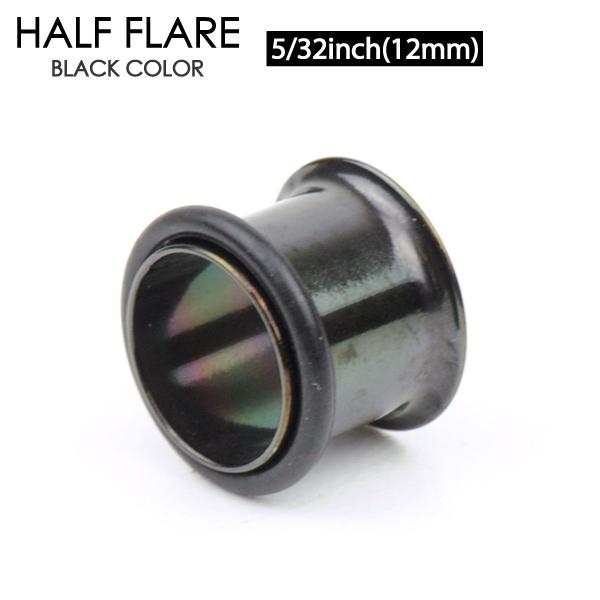 【メール便対応】ボディピアス シングルフレア ブラック 5/32inch(12mm) サージカルステンレス316L製(医療用)ハーフフレア BLACK イヤーロブ ホールトゥピアスに最適 ボディピアスの片側がフレアスカート形状 片側がゴムで固定 5/32インチ(12ミリ)┃