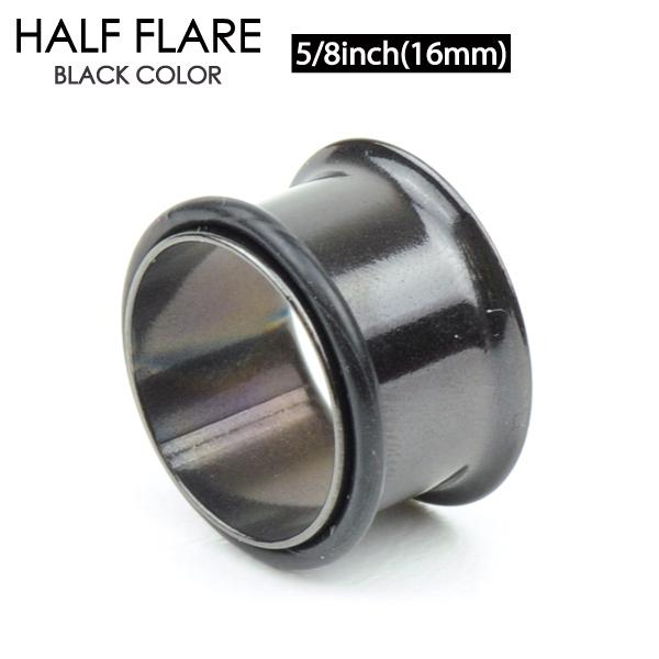 メール便 送料無料 ボディピアス シングルフレア ブラック 5/8インチ(16mm) サージカルステンレス316L製(医療用)ハーフフレア BLACK イヤーロブ ホールトゥピアスに最適 ボディピアスの片側がフレアスカート形状 片側がゴムで固定 16ミリ ┃