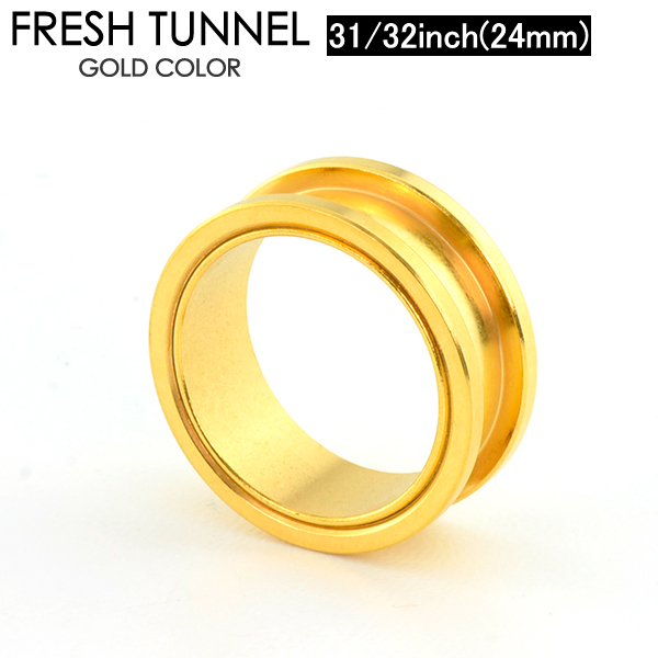 メール便 送料無料 ボディピアス フレッシュトンネル ゴールド 31/32inch(24mm) カラーコーティング加工 イヤーロブ ホールトゥに最適 GOLD ボディーピアス 24ミリ┃