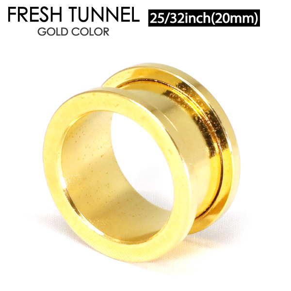 メール便 送料無料 フレッシュトンネル ゴールド 25/32inch(20mm) カラーコーティング加工 イヤーロブ ホールトゥに最適 GOLD ボディーピアス 20ミリ ┃