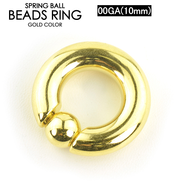 メール便 送料無料 キャプティブビーズリング ゴールド 00GA(10mm) スナップイン GOLD サージカルステンレスにカラーコーティング スプリングボール ボディピアス 00ゲージ┃