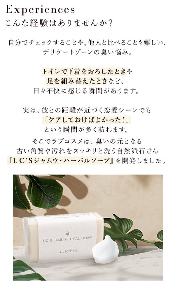 ラブコスメ ジャムウ ハーバルソープ 68g デリケートゾーン ソープ 泡 黒ずみ 保湿 臭い 匂い ケア フェムケア vio 女性 石鹸 デリケートゾーンソープ 個包装 vゾーン vライン 脇 おりもの 生理 無添加 植物由来