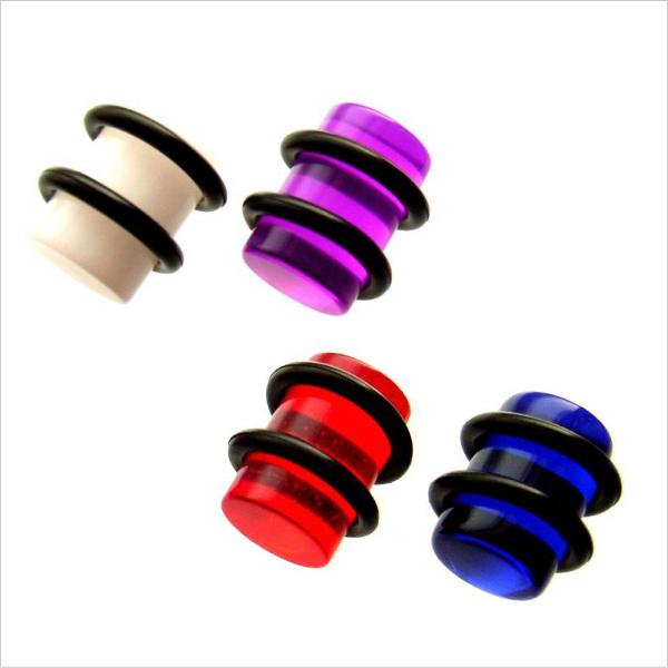 【メール便対応】UVアクリル プラグ PLUG 00G(10mm*全長15mm) ボディーピアス カラー 両側をラバーゴムで固定します カラフル 定番ボディピアス イヤーロブ 00ゲージ(10ミリ)┃