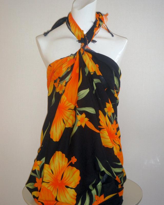 パレオ 黒ベースにハイビスカス オレンジ系【ビキニ水着とコーディネート/ブラック】p-019-01 【BL-P】 ┃
