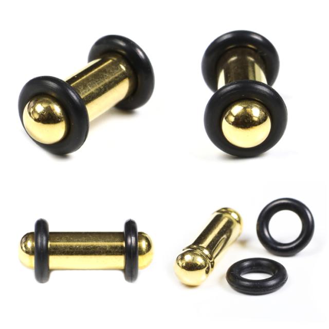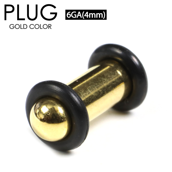 【メール便対応】ボディピアス プラグ ゴールド 6G(4mm) PLUG GOLD サージカルステンレス316L 定番ボディーピアス イヤーロブ カラー 6ゲージ(4ミリ)┃