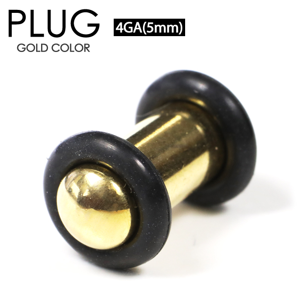 【メール便対応】ボディピアス プラグ ゴールド 4G(5mm) PLUG GOLD サージカルステンレス316L 定番ボディーピアス イヤーロブ カラー 4ゲージ(5ミリ)┃