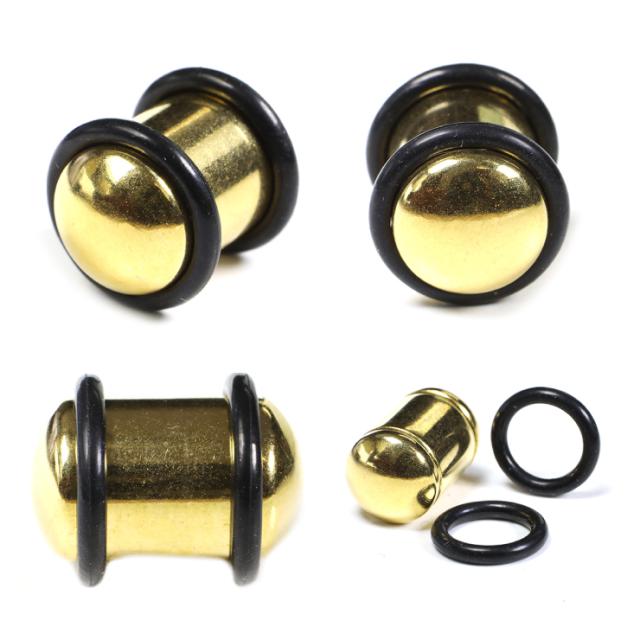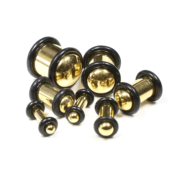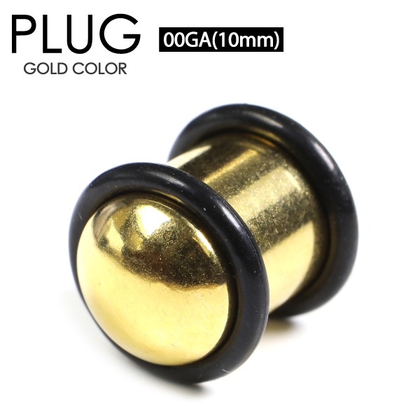 【メール便対応】ボディピアス プラグ ゴールド 00G(10mm) PLUG GOLD サージカルステンレス316L 定番ボディーピアス イヤーロブ カラー 00ゲージ(10ミリ)┃