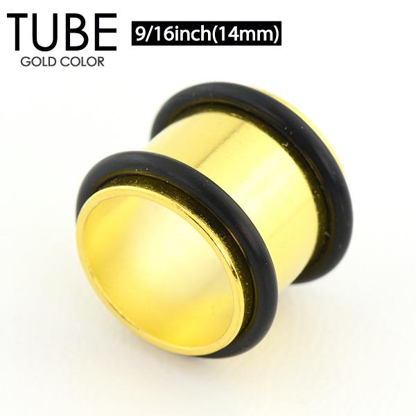 【メール便対応】チューブ ゴールド 9/16inch(14mm) GOLD カラー 両側をゴムで固定 定番ボディーピアス アイレット スタイリッシュ イヤーロブ ホールトゥピアス 9/16インチ(14ミリ)┃