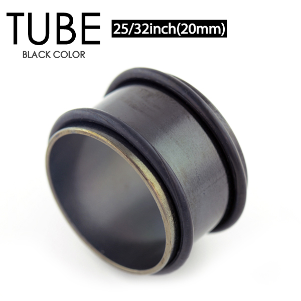 【メール便対応】チューブ ブラック 25/32inch(20mm) BLACK カラー 両側をゴムで固定 定番ボディーピアス アイレット スタイリッシュ イヤーロブ ホールトゥピアス 25/32インチ(20ミリ)┃