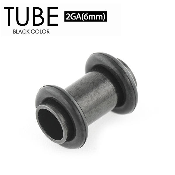 【メール便対応】チューブ ブラック 2G(6mm) BLACK カラー 両側をゴムで固定 定番ボディーピアス アイレット スタイリッシュ イヤーロブ ホールトゥピアス 2ゲージ(6ミリ)┃