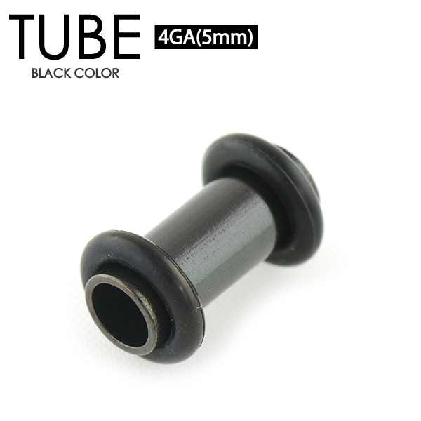 【メール便対応】チューブ ブラック 4G(5mm) BLACK カラー 両側をゴムで固定 定番ボディーピアス アイレット スタイリッシュ イヤーロブ ホールトゥピアス 4ゲージ(5ミリ)┃