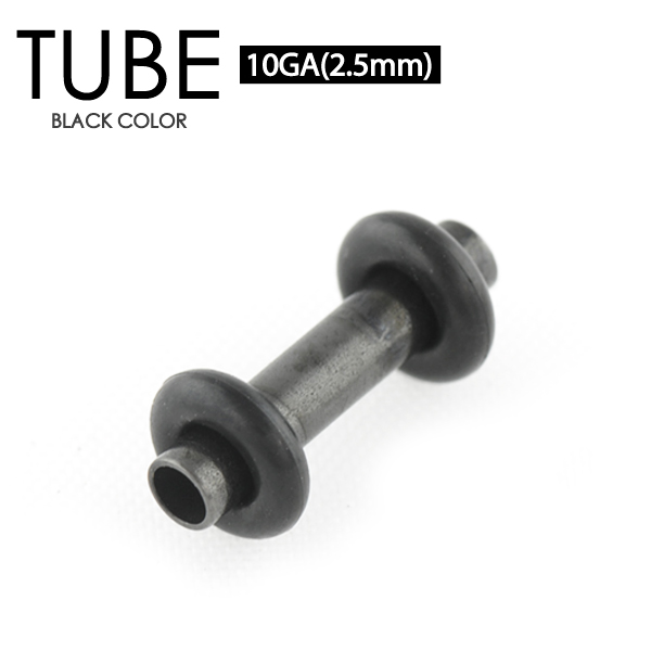 【メール便対応】チューブ ブラック 10G(2.5mm) BLACK カラー 両側をゴムで固定 定番ボディーピアス アイレット スタイリッシュ イヤーロブ ホールトゥピアス 10ゲージ(2.5ミリ)┃