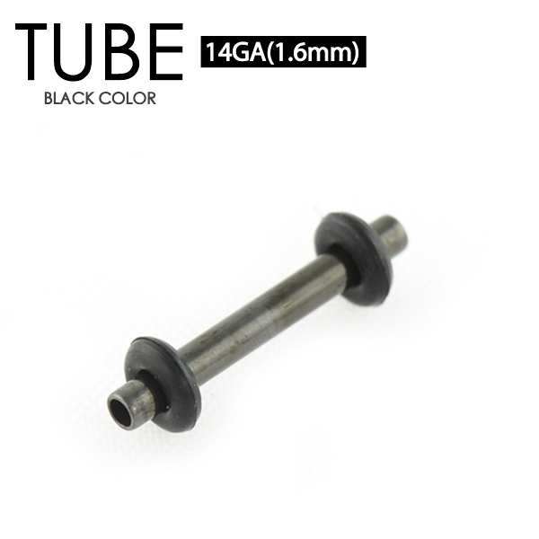 【メール便対応】チューブ ブラック 14G(1.6mm) BLACK カラー 両側をゴムで固定 定番ボディーピアス アイレット スタイリッシュ イヤーロブ ホールトゥピアス 14ゲージ(1.6ミリ)┃