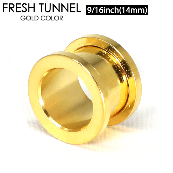メール便 送料無料 ボディピアス フレッシュトンネル ゴールド 9/16inch(14mm) カラーコーティング Gold ボディーピアス カラーコーティング加工 イヤーロブ ホールトゥに最適 14ミリ ┃