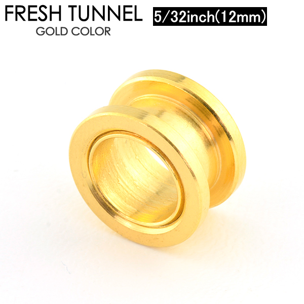 【メール便対応】フレッシュトンネル ゴールド 5/32inch(12mm) GOLD アイレット ボディーピアス サージカルステンレス カラーコーティング加工 イヤーロブ ホールトゥに最適 5/32インチ(12ミリ)┃