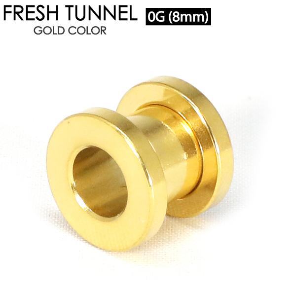 【メール便対応】フレッシュトンネル ゴールド 0G(8mm) GOLD アイレット ボディーピアス サージカルステンレス カラーコーティング加工 イヤーロブ ホールトゥに最適 0ゲージ┃