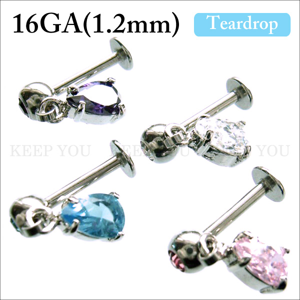 【メール便対応】ラブレット ラインストーン ティアドロップ 16G(1.2mm) ジュエル モチーフ デザイン ボディピアス ボディーピアス 16ゲージ(1.2ミリ) 揺れる 可愛い ┃