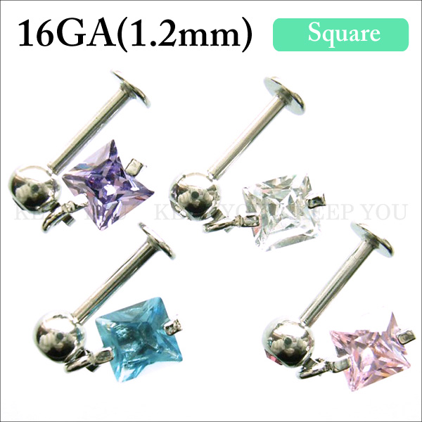 【メール便対応】ラブレット ジュエル 四角(スクエアー)16G(1.2mm) ジュエル モチーフ デザイン ボディピアス ボディーピアス 16ゲージ(1.2ミリ) 揺れる 可愛い ┃