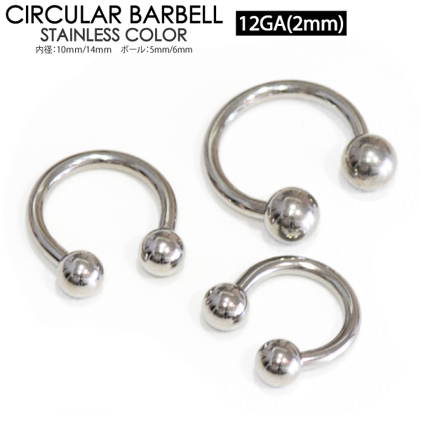 【メール便対応】サーキュラーバーベル 12ゲージ(2.0ミリ)ボール サージカルステンレス316L 12G ボディピアス (2.0mm) 【軟骨ピアス トラガス イヤーロブ ヘリックス リップ タンリム ロブ ホールトゥピアスに最適】 ┃