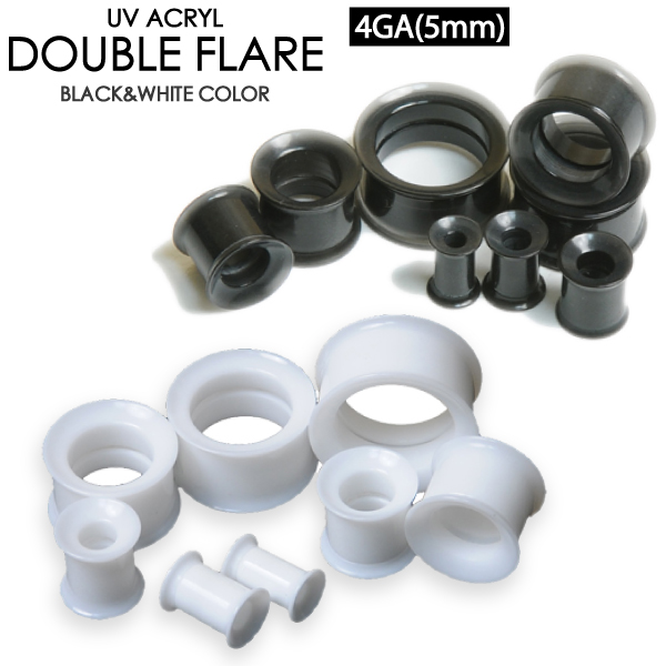 【メール便対応】UVアクリル ダブルフレア 4G(5mm) ブラック ホワイト アイレット ねじ式脱着タイプ ボディーピアス ボディピアス 4ゲージ(5ミリ) ┃