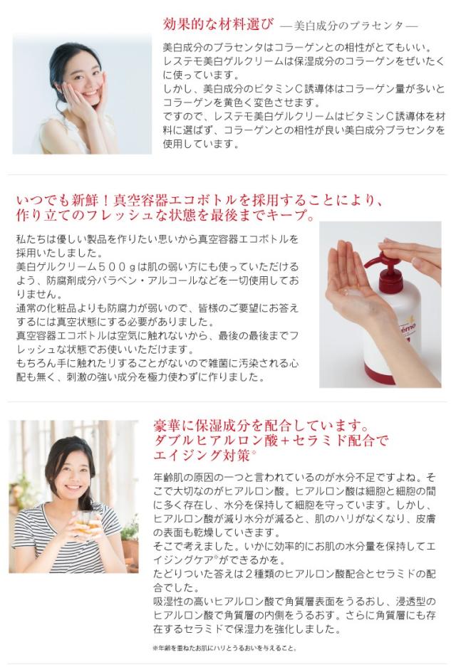 送料無料 美白ゲル500g お得な詰替用 シルク姉愛用コスメ スキンケア 乾燥肌 しみ 小じわ ハリ レステモ 美容液 乳液 化粧水 化粧下地