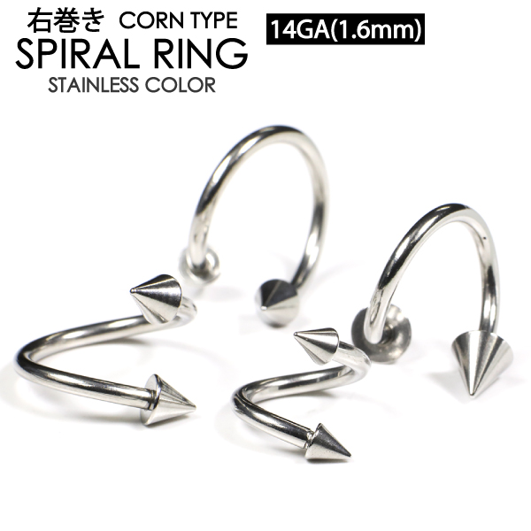 【メール便対応】ツイスト スパイラル スパイク コーン 14ゲージ(1.6ミリ) サージカルステンレス316L スパイラルリング ボディピアス ロブ ヘリックス 軟骨ピアス 14G (1.6mm) ┃