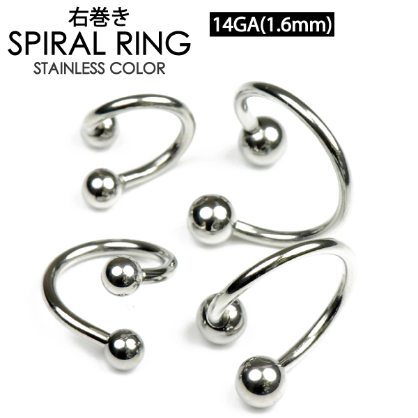 【メール便対応】スパイラル ツイスト ボール 14G(1.6mm) サージカルステンレス316L スパイラルリング ボディーピアス ボディピアス 14ゲージ/1.6ミリ ┃