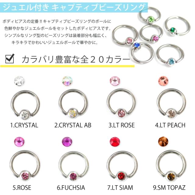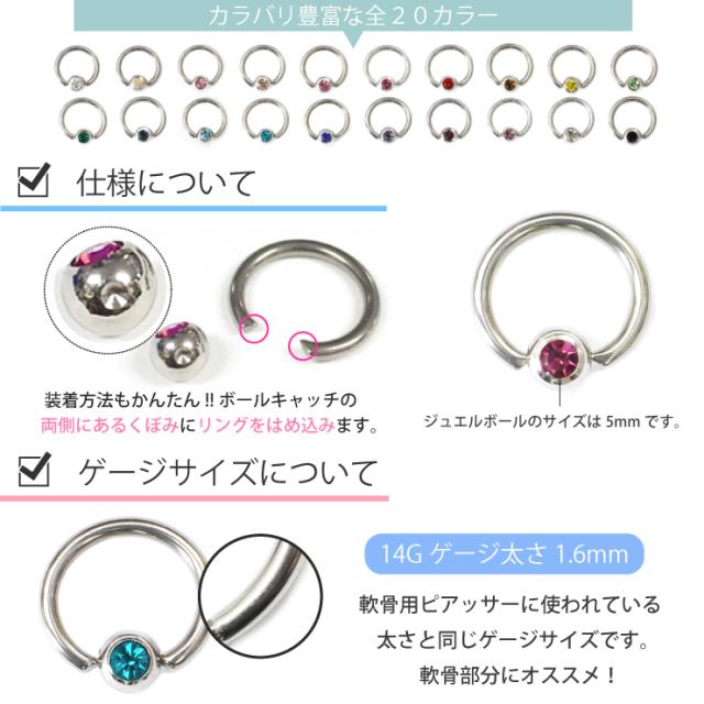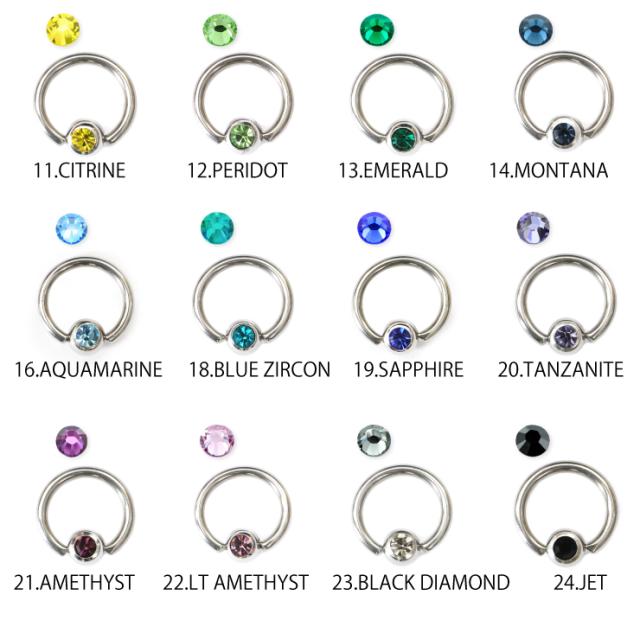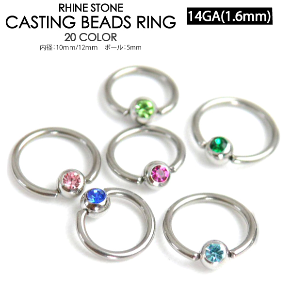 【メール便対応】キャプティブビーズリング カラージュエル付 14G(1.6mm) サージカルステンレス CASTING キャスティング ボディピアス 軟骨 トラガス ラインストーン イヤーロブ┃