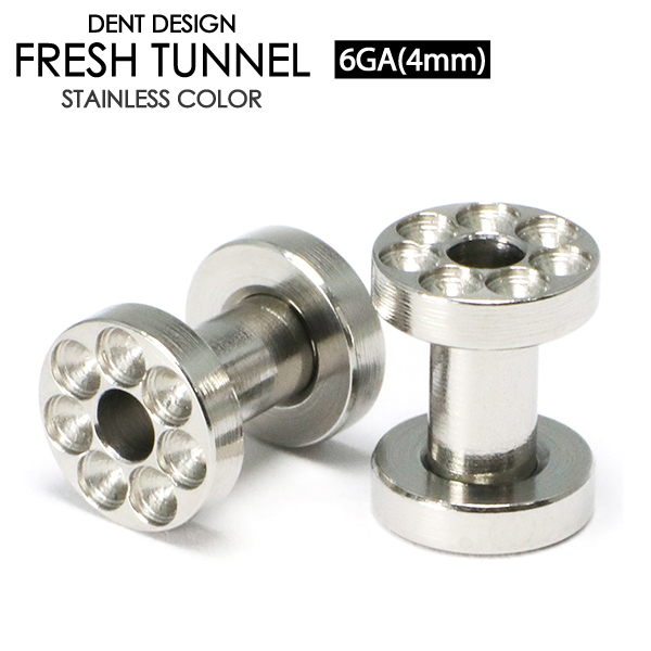 【メール便対応】ボディピアス 凹仕様 フレッシュトンネル 6G(4mm) アイレット サージカルステンレス316L デザイン ボディーピアス イヤーレット イヤーロブ 6ゲージ ┃