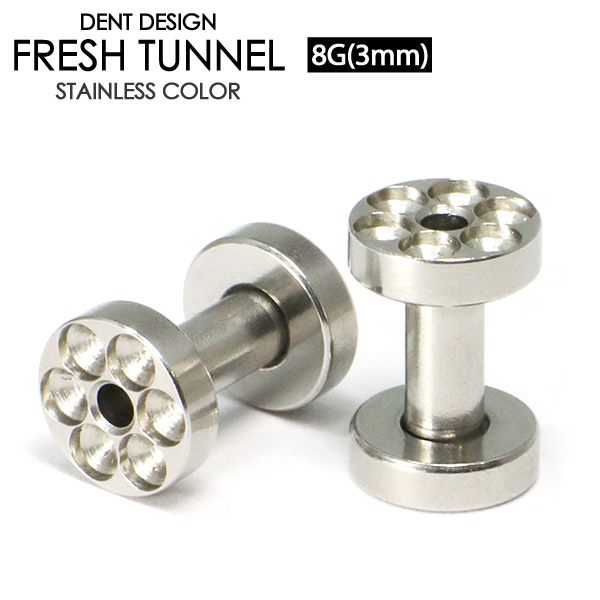 【メール便対応】ボディピアス 凹仕様 フレッシュトンネル 8G(3mm) アイレット サージカルステンレス316L デザイン ボディーピアス イヤーレット イヤーロブ 8ゲージ┃