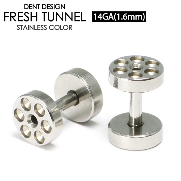 【メール便対応】ボディピアス 凹仕様 フレッシュトンネル 14G(1.6mm) アイレット サージカルステンレス316L デザイン ボディーピアス イヤーレット イヤーロブ 14ゲージ┃