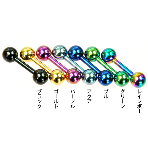 【メール便対応】ミディアム バーベル カラー 14G(1.6mm) カラーコーティング加工 ストレート ボディピアス ボディーピアス サージカルステンレス 軟骨ピアス トラガス イヤーロブ ┃