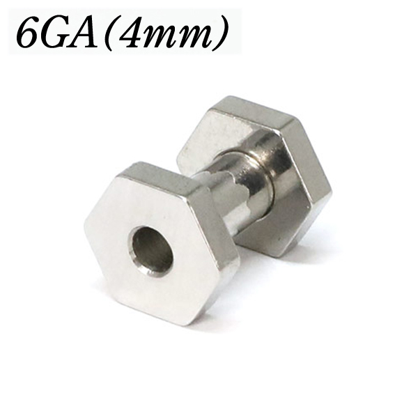 【メール便対応】フレッシュトンネル 六角形 6G(4mm) ヘキサゴン デザイン ハード サージカルステンレス316L ボディーピアス ロブ アイレット イヤーレット 6ゲージ┃
