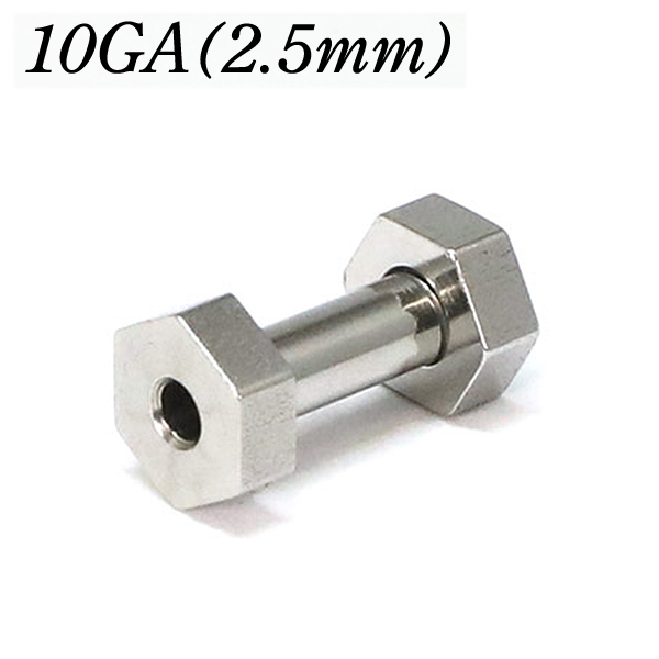 【メール便対応】フレッシュトンネル 六角形 10G(2.5mm) ヘキサゴン デザイン ハード サージカルステンレス316L ボディーピアス ロブ アイレット イヤーレット 10ゲージ┃