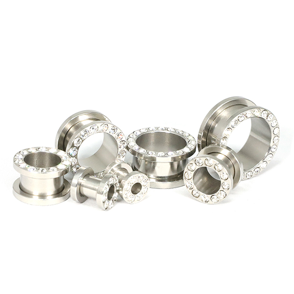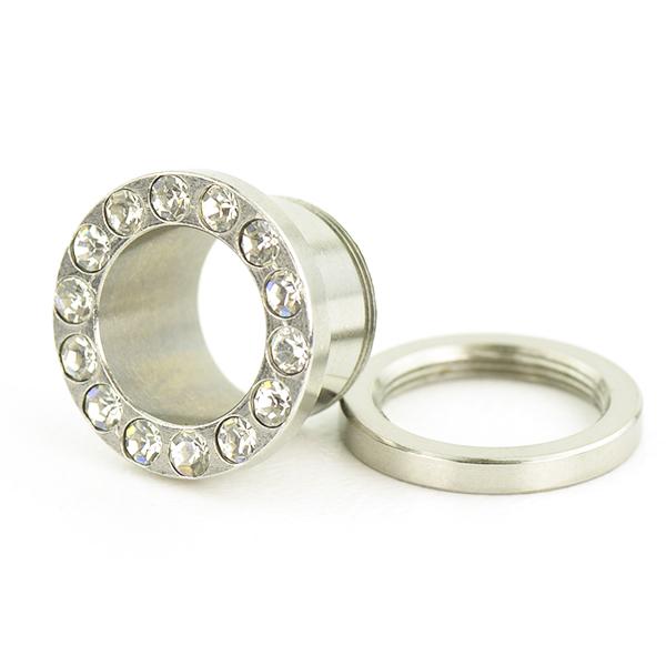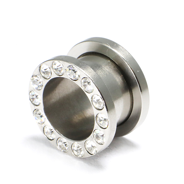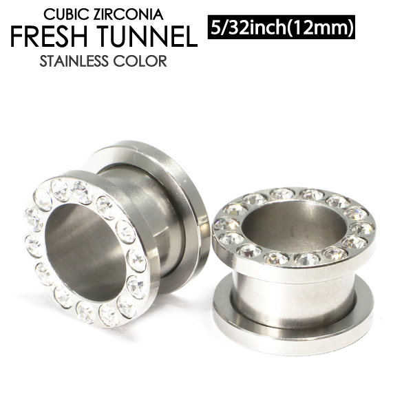 メール便 送料無料 フレッシュトンネル ラインストーン仕様 5/32inch(12mm) サージカルステンレス316L ボディピアス【ジュエル付 ロブ アイレット イヤーレット】12ミリ ┃