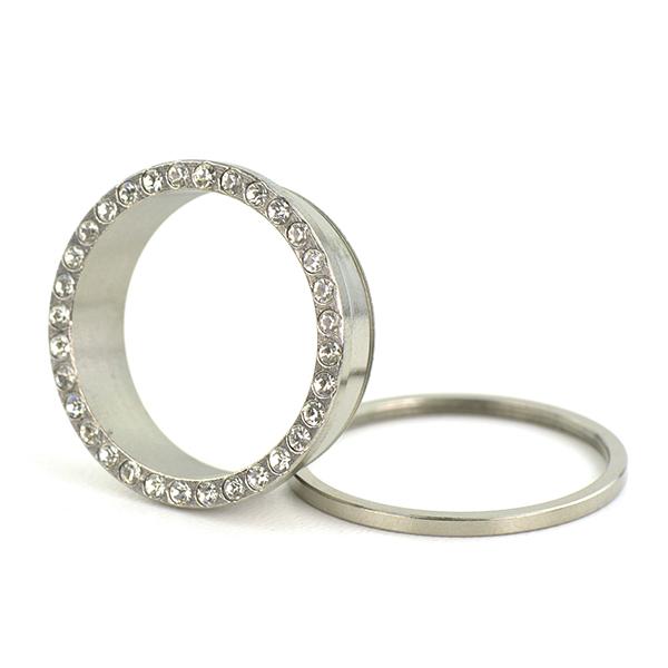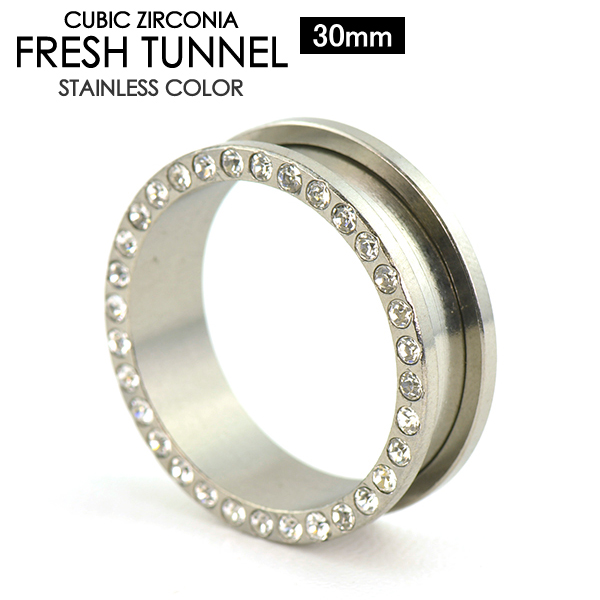 メール便 送料無料 フレッシュトンネル ラインストーン仕様 30mm サージカルステンレス316L ボディピアス【ジュエル付 ロブ アイレット イヤーレット】30ミリ ┃