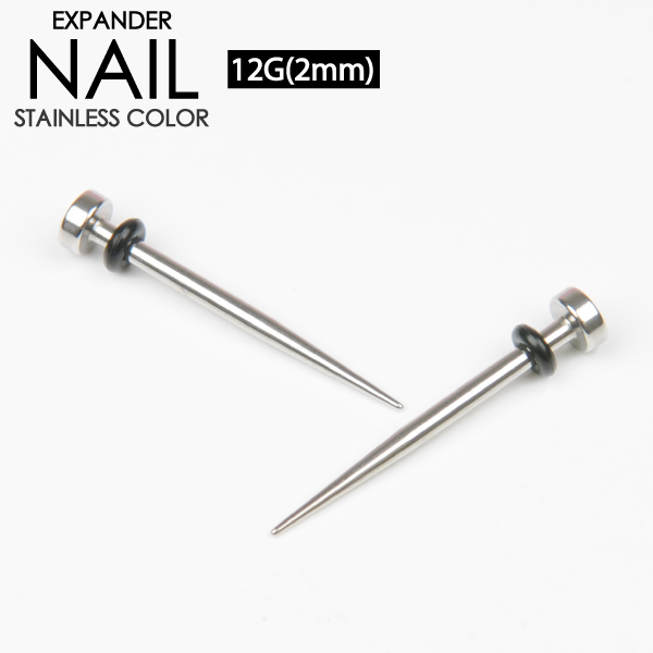 【メール便対応】拡張器 エキスパンダー ネイル 12ゲージ(2ミリ) サージカルステンレス316L ホールアップ ニードル 釘のような形状 ボディピアス ボディーピアス 12G(2mm)┃