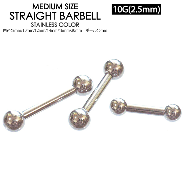 【メール便対応】ボディピアス バーベル ストレート 10GA(2.5mm)ボール サージカルステンレス316L(医療用)10ゲージ(2.5ミリ) ┃