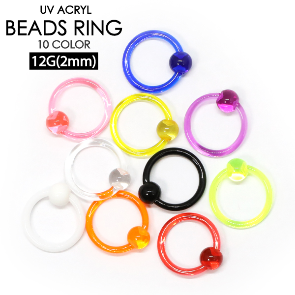 【メール便対応】UVアクリル キャプティブビーズリング 12G(2mm) カラー ボディーピアス リングピアス サークルリング BCR CBR ボディピアス 12ゲージ(2ミリ) ┃