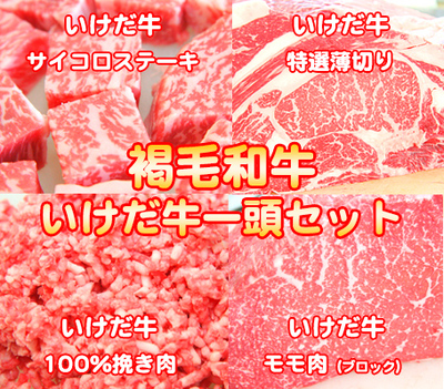 内容量:いけだ牛サイコロステーキ200g 特選薄切り200g ももブロック200g 挽肉200g