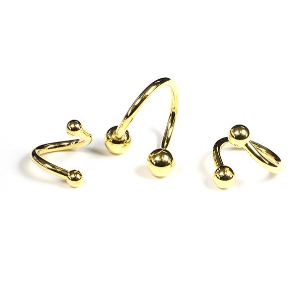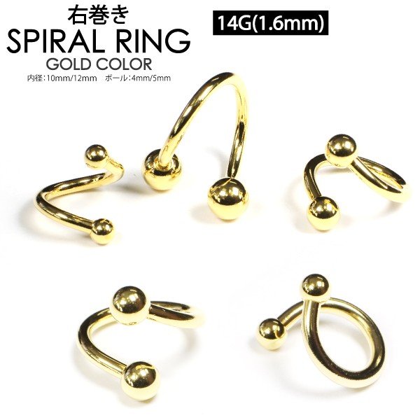【メール便対応】スパイラル ゴールド 14G(1.6mm) ボール GOLD カラー サージカルステンレス316L ボディーピアス ツイストスパイラルリング ロブ ヘリックス 軟骨ピアス 14ゲージ┃