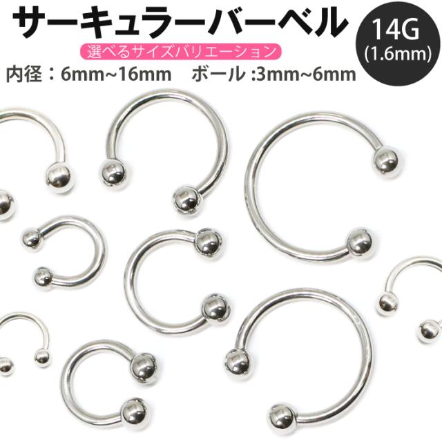 【メール便対応】サーキュラーバーベル 14ゲージ(1.6ミリ)ボール サージカルステンレス316L 14G ボディピアス (1.6mm) 【軟骨ピアス トラガス イヤーロブ ヘリックス リップ タンリム ロブ ホールトゥピアスに最適】 ┃