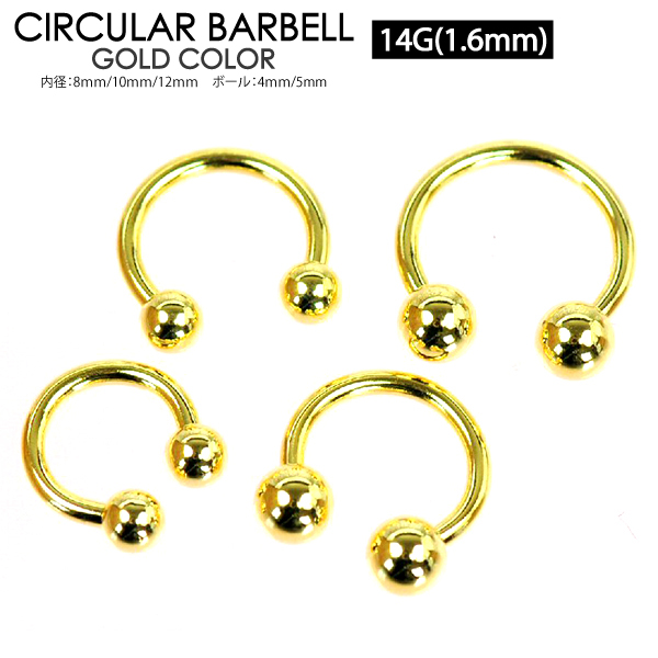 【メール便対応】サーキュラーバーベル ゴールド 14G(1.6mm) ボール サージカルステンレス カラーコーティング加工 金色 14ゲージ 定番ボディピアス ボディーピアス GOLD【軟骨ピアス トラガス イヤーロブ ヘリックス リップ タンリム ロブ】 ┃